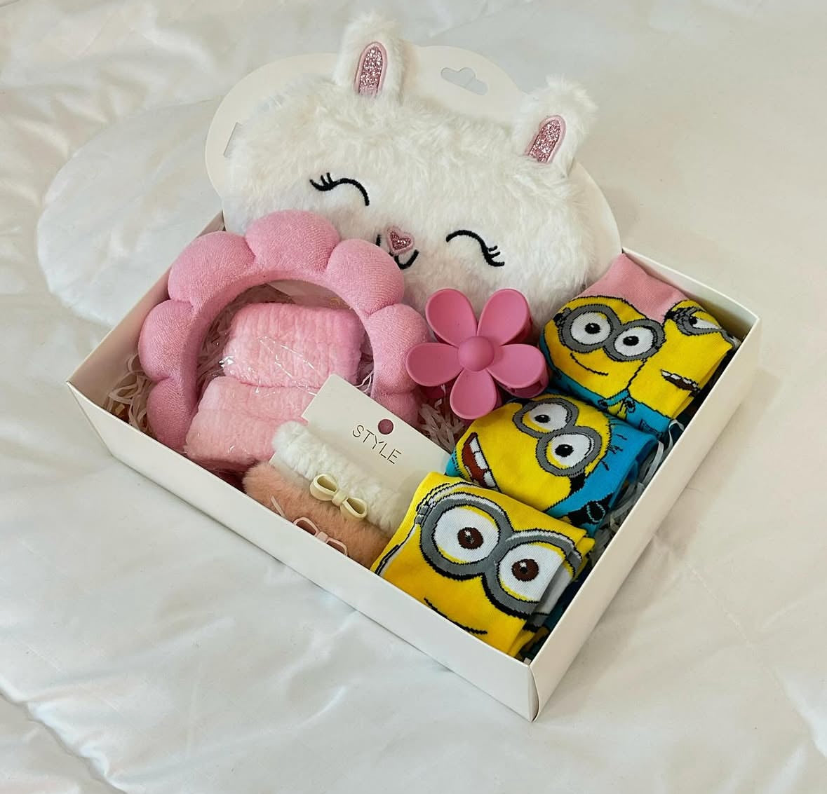 يحتوى على ( قناع نوم ، طوق ، 3 جوارب ، مشبك ، ربطات شعر)