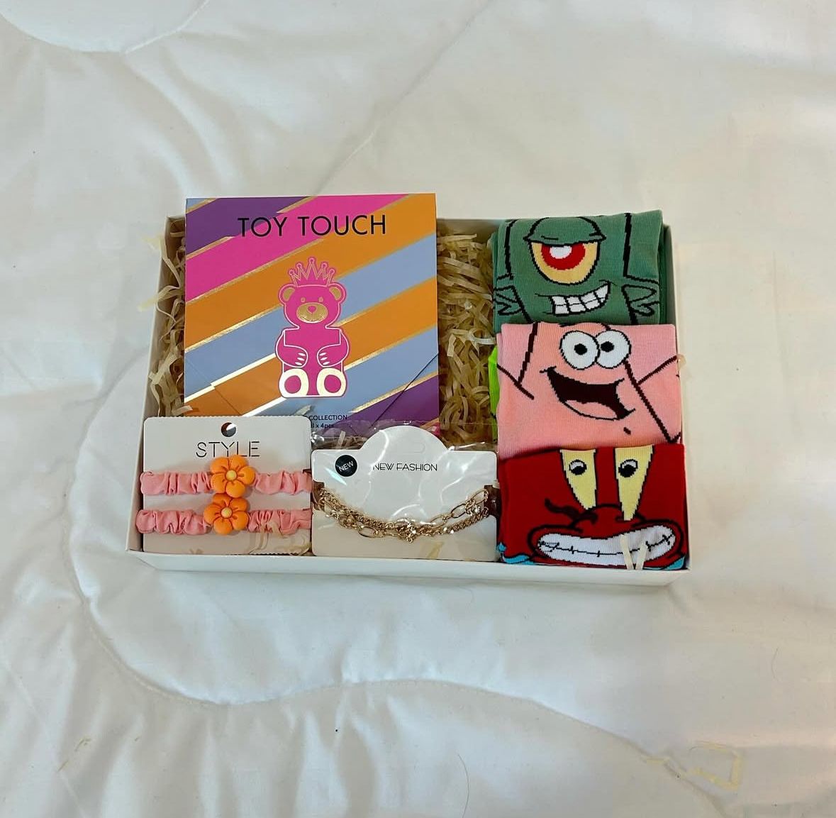يحتوي على ( سلسال ، ٣ جوارب ، علبه عطور ، رابطات شعر )